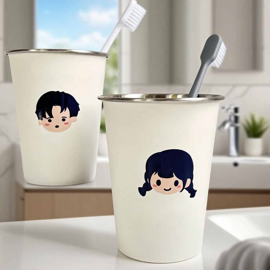 加厚不銹鋼情侶牙刷杯